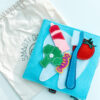 Materijal: pamučna tkanina, filc, uzice, gumbi, čičak kopče
