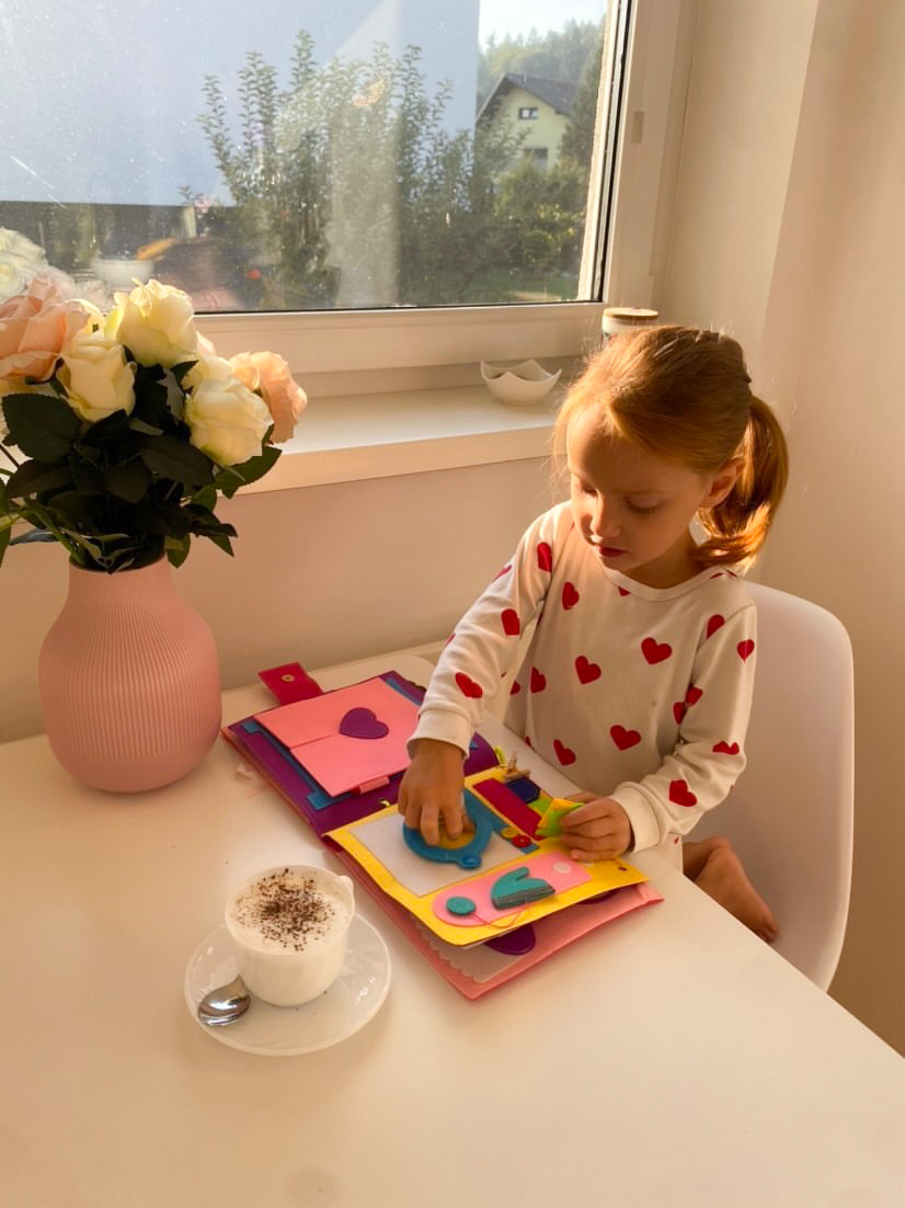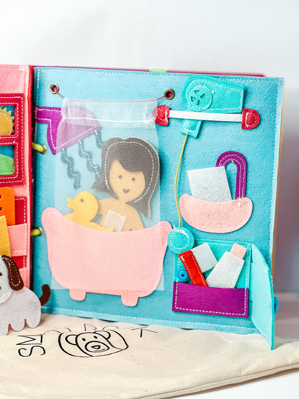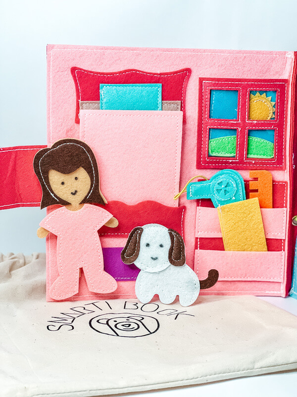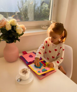 Tiha knjiga je ručno izrađena i obrazovno dizajnirana razvoj kako bi potaknula dijete na otkrivanje i učenje novih oblika, sortiranja i organiziranja.