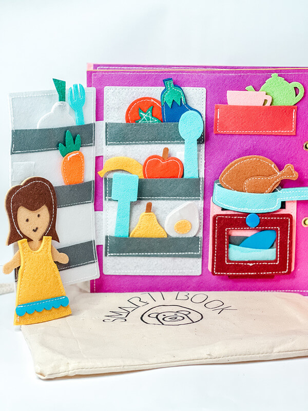 ✅ Igra uloga: Tiha knjiga potiče igru uloga, gdje djeca mogu koristiti unutarnje elemente poput lutkica za prste ili dijeliti uloge među sobom.