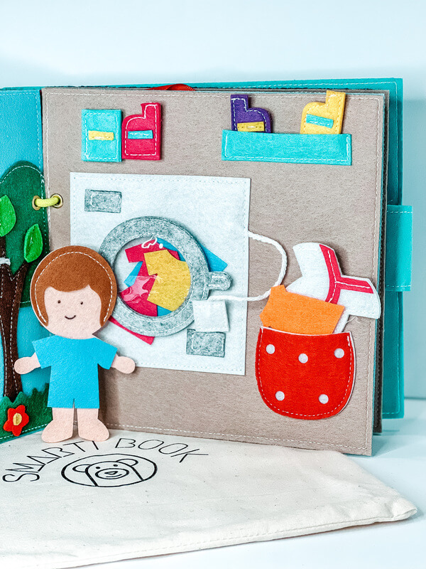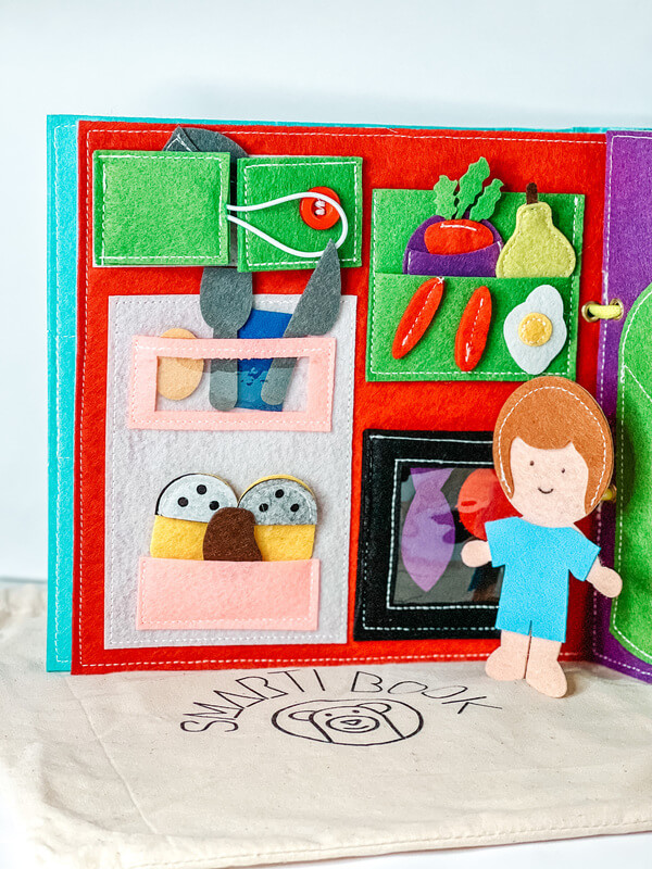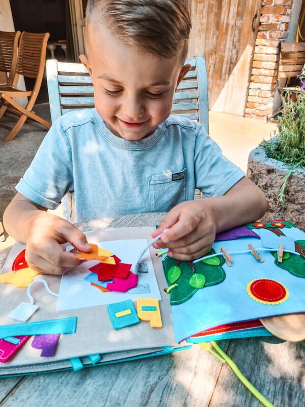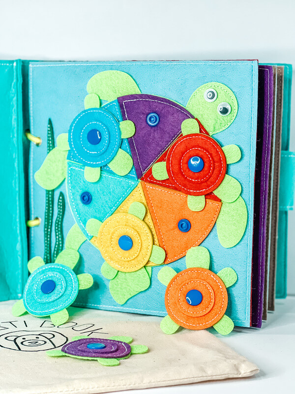 Tiha knjiga je ručno izrađena i obrazovno dizajnirana od kako bi potaknula dijete na otkrivanje i učenje novih oblika, sortiranja i organiziranja.