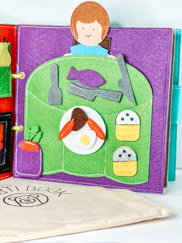 ✅ Igra uloga: Tiha knjiga potiče igru uloga, gdje djeca mogu koristiti unutarnje elemente poput lutkica za prste ili dijeliti uloge među sobom.