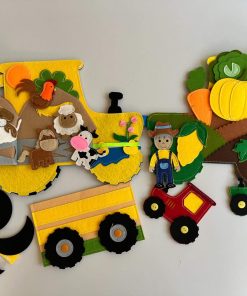 Berba plodova: Na poljima su narasli kukuruz, krumpir i jabuke. Dijete ih bere i slaže na prikolicu. Hoćeš li danas traktorom voziti povrće na tržnicu ili sijeno u štalu? Provjeri što je zrelo i spremno za berbu.
