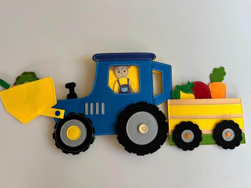 Tiha knjiga Traktor oblikovana je posebno za najmlađe istraživače i odličan je izbor za prvi susret s mekanom interaktivnom knjigom. Prikladna je već od 1. godine nadalje. Osmišljena je tako da dijete kroz igru potiče na razvoj fine motorike, prepoznavanje boja, oblika i različitih tekstura te istovremeno vježba logičko razmišljanje i koordinaciju.