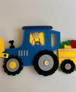 Prikolica i teret: Traktor vuče prikolicu u koju dijete slaže različite vrste tereta. Hoće li to biti sijeno, povrće ili možda tajanstvena kutija? Slaganjem i prenošenjem dijete razvija finu motoriku i maštu.
