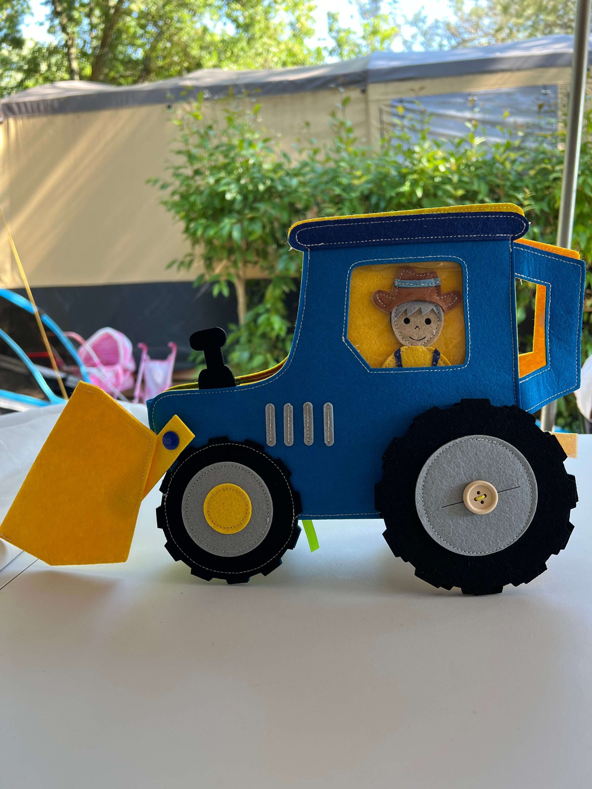 Prikolica i alat: Prikolicu treba napuniti ili isprazniti. Možda treba zakačiti novi alat? Ili složiti gajbice jabuka? Dijete istražuje, kači, povlači i premješta elemente te tako vježba upotrebu ruku i razumijevanje odnosa uzrok–posljedica.