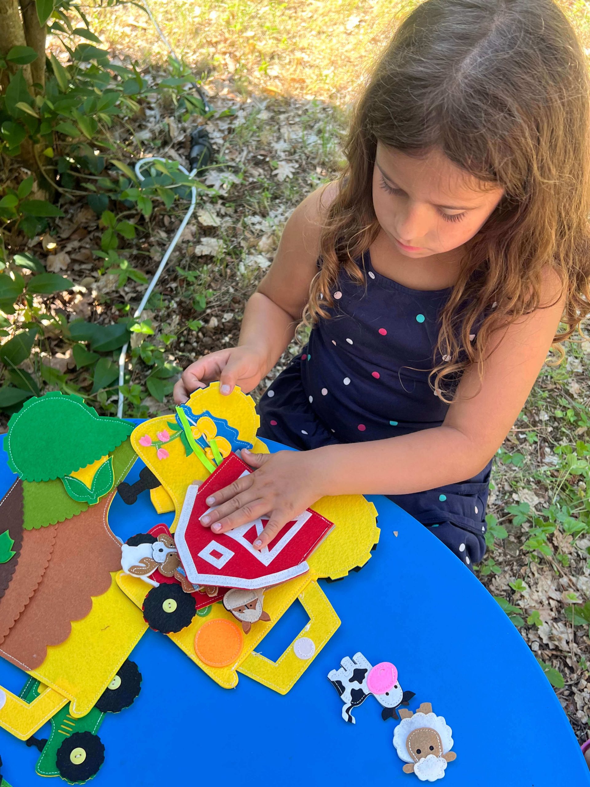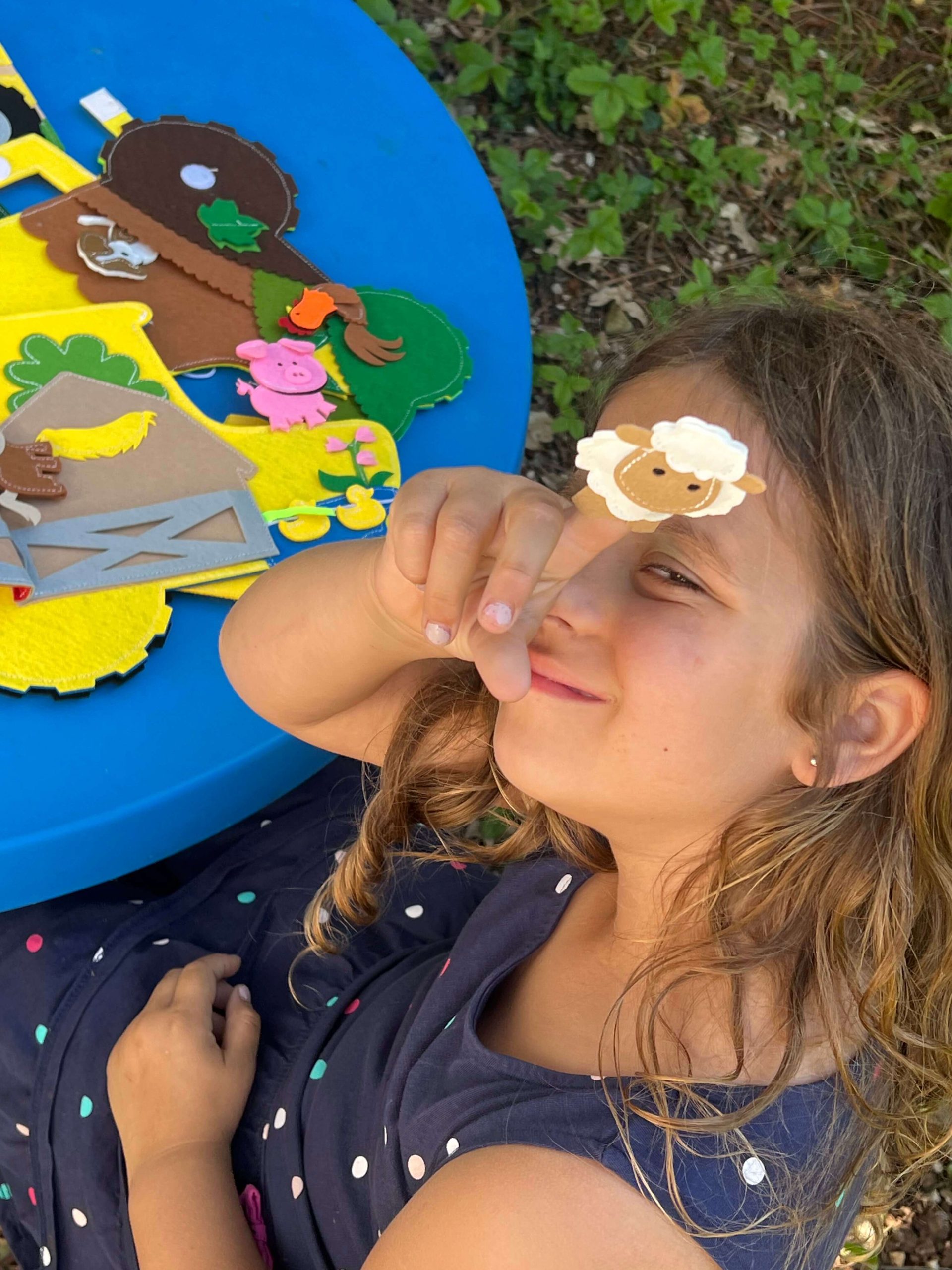 Životinje na farmi: Na travnjaku i u štalici žive domaće životinje – krava, ovca, kokoš… Dijete ih imenuje, pomiče po prostoru ili im „nosi“ hranu. Ova aktivnost jača rječnik i rano razumijevanje svijeta oko sebe.