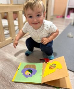 Sadrži 7 interaktivnih stranica. Prikladno za djecu od 8 mjeseci nadalje. Na prvi pogled može se činiti vrlo jednostavnom, ali nudi brojne aktivnosti i mogućnosti za poticanje dječjeg govornog razvoja, finih motoričkih vještina i kreativne igre. Veliki likovi na svakoj stranici s pažljivo odabranim kontrastima boja potiču naše najmlađe da dodiruju, istražuju i prevladavaju izazove. Njihov prvi zadatak bit će pronaći rješenje kako mali crv može proći kroz rupu, dok ih također možemo potaknuti da imenuju sve prepreke (zmija, kruška, sladoled itd.). Zbog svog sastava izvrsna je za razvoj senzorne integracije jer dijete razvija to područje dodirom ponuđenih materijala. Mali crv je nedvojbeno vrlo privlačan lik za djecu koja žele istražiti unutrašnjost knjige.