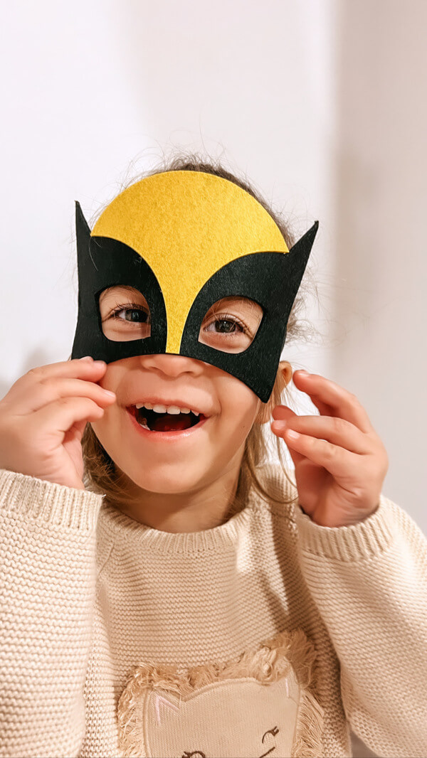 Die Masken sind sowohl für Kinder als auch für Erwachsene geeignet. Das Gummiband, das um den Kopf geht, ist verstellbar und kann je nach Kopfumfang vergrößert oder verkleinert werden.